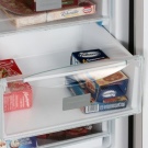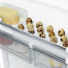 Teure Modelle haben an den Türen nicht nur Regale, sondern auch Kästen mit einem angrenzenden Deckel, in dem sich Produkte lagern lassen, die starke Gerüche verteilen oder diese leicht aufnehmen.