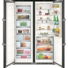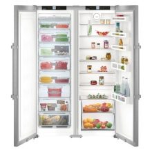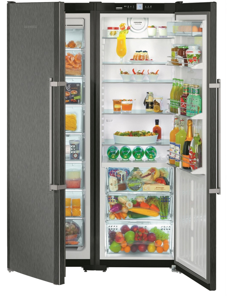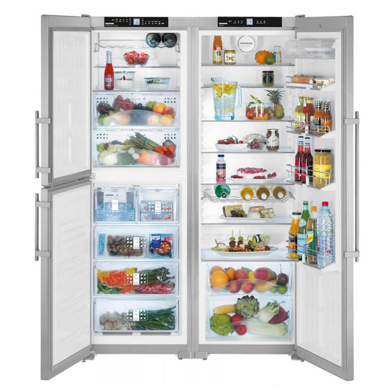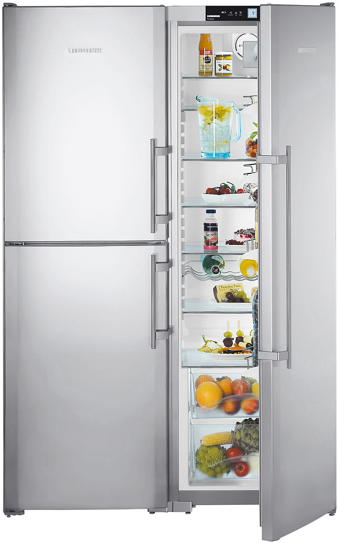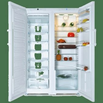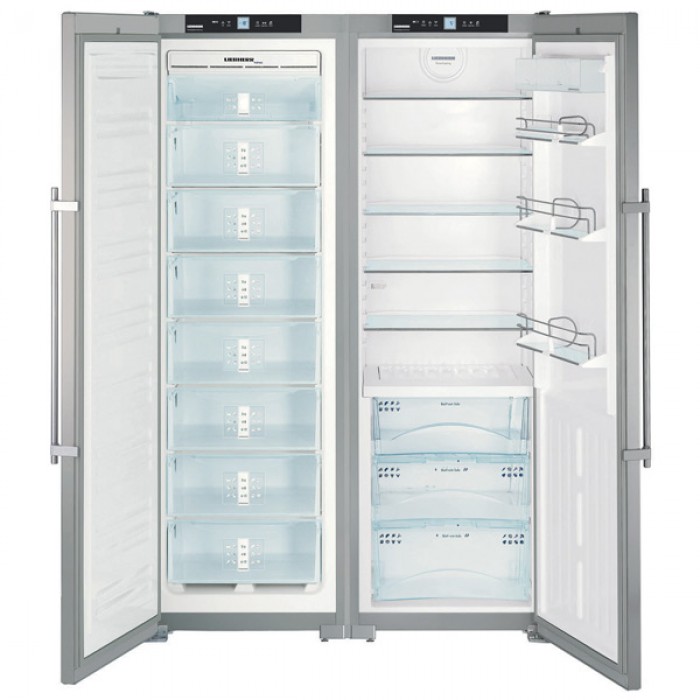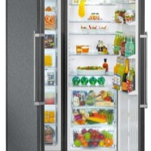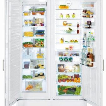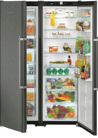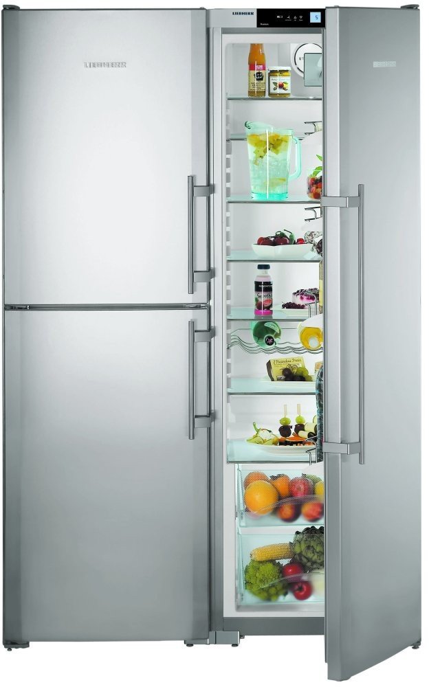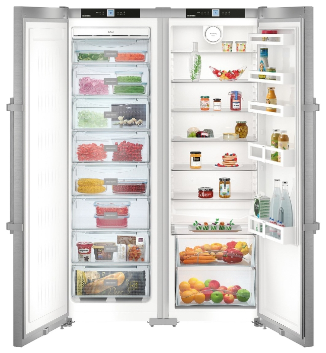 Die "Side by Side" -Serie repräsentiert die Klasse der größten Liebherr-Geräte. Zwei Kühlschränke werden zum Kühlen von zwei Kompressoren verwendet, und das durchschnittliche Nutzvolumen in ihnen beträgt 650 Liter.