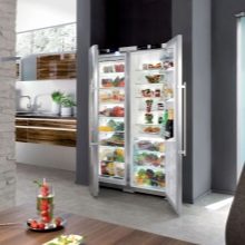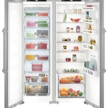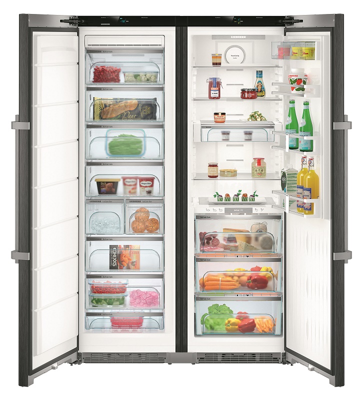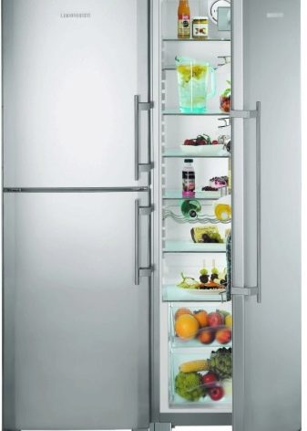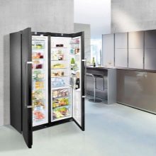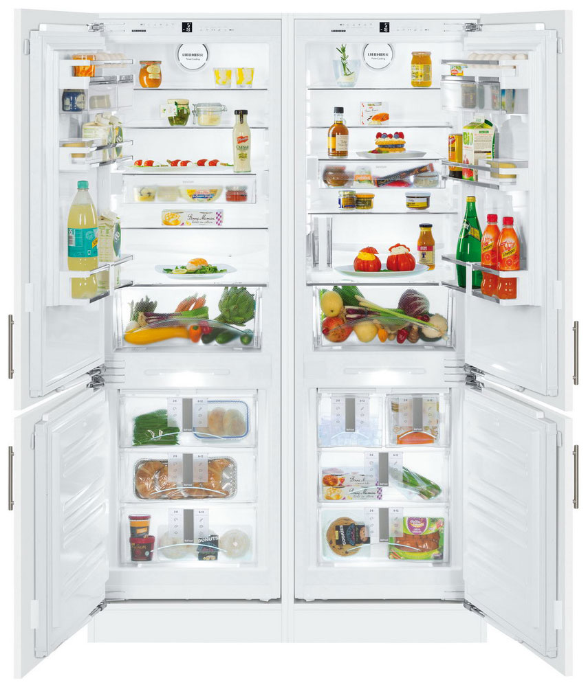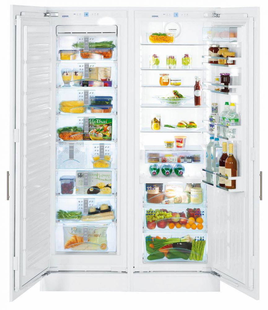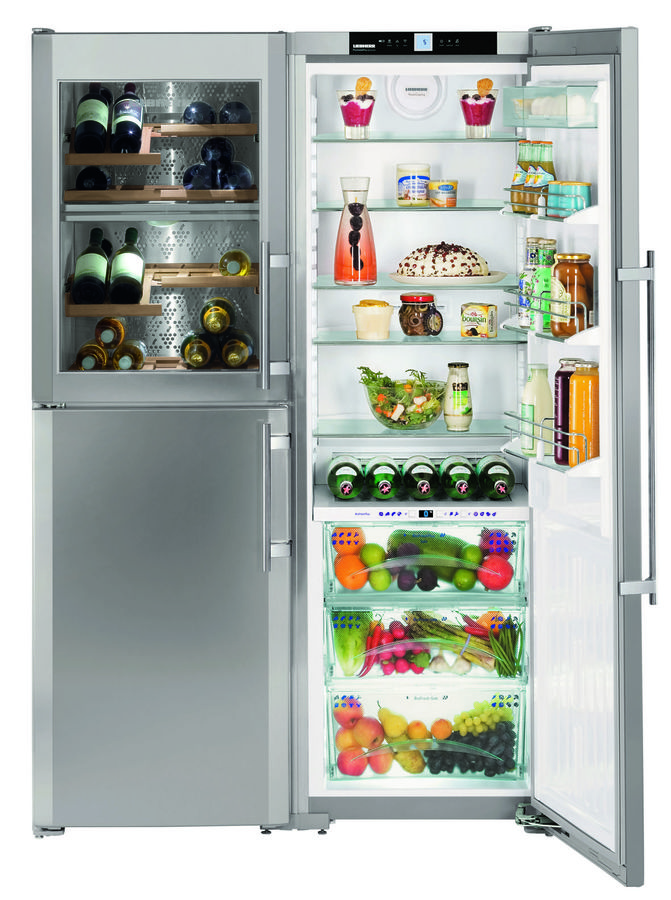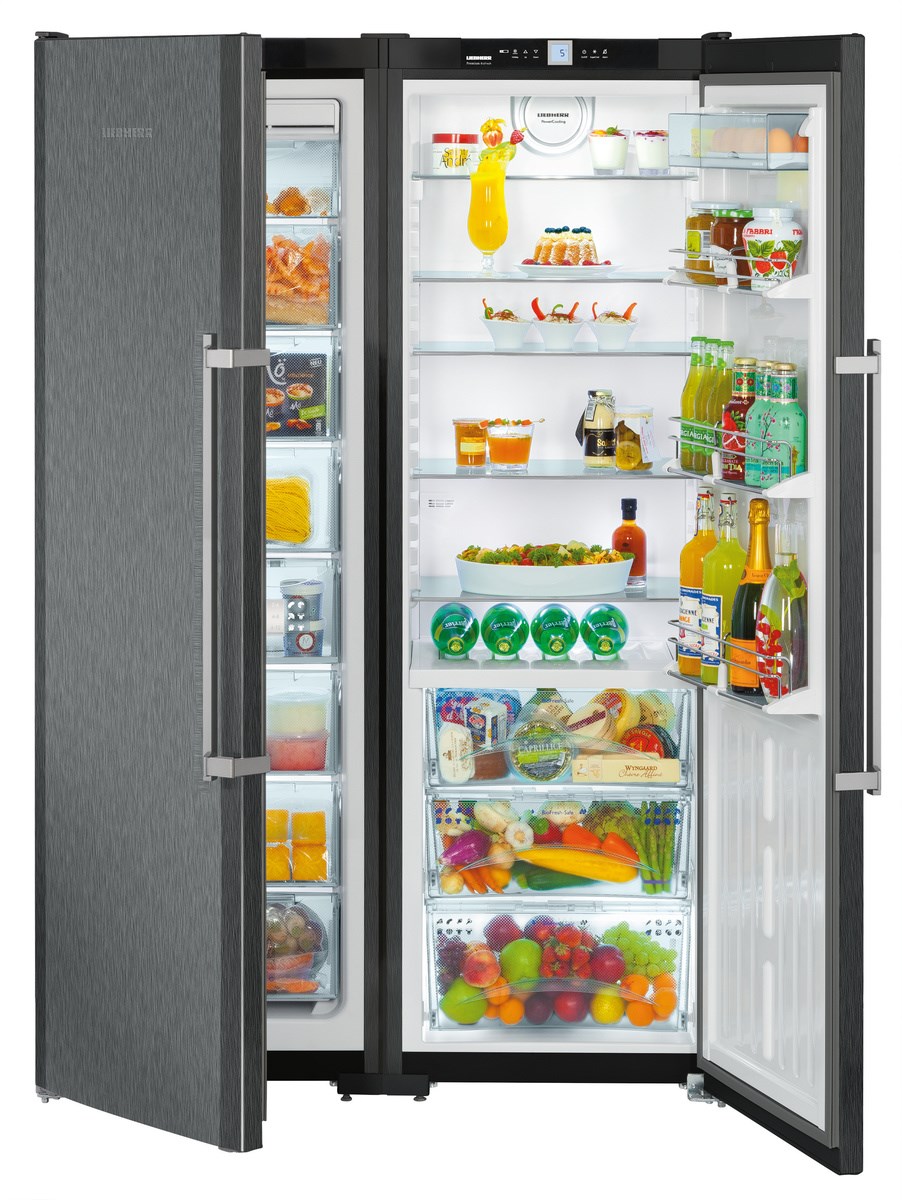 Die "Side by Side" -Serie repräsentiert die Klasse der größten Liebherr-Geräte. Zwei Kühlschränke werden zum Kühlen von zwei Kompressoren verwendet, und das durchschnittliche Nutzvolumen in ihnen beträgt 650 Liter.