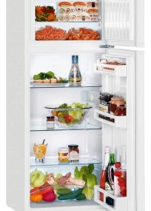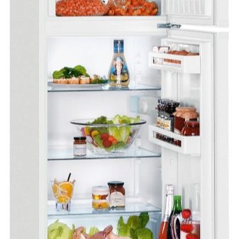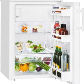 Klein und ordentlich auf der Außenseite, funktional im Inneren, gibt es zwei Arten - freistehend und eingebaut. Türen können neu aufgehängt werden, was die Wahl des Platzes für das Gerät erheblich erleichtert. Schlagfeste Regale im Inneren können auch um mehrere Teile nach oben oder unten verschoben werden. An der Tür gibt es Standardregale für Flaschen, Eier, Milchprodukte, einige von ihnen sind mit einem beweglichen Separator ausgestattet.