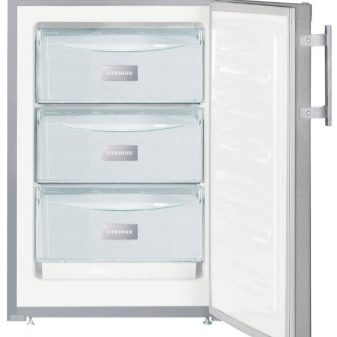Der Gefrierschrank muss manuell aufgetaut werden. Minimale Modelle haben folgende Parameter: Breite bis 55 cm, Tiefe auch bis 55 cm, Höhe - 1 m, Kammervolumen bis 100 Liter.