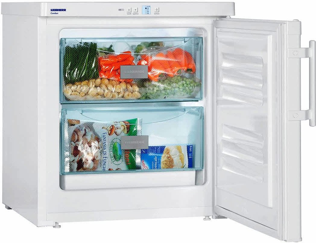 Liebherr-Tiefkühltruhen sind speziell für diejenigen konzipiert, die das ganze Jahr über Beeren und Früchte aus dem Garten fressen oder oft Fleisch garen.Das Gesamtnutzvolumen beträgt 158 Liter, im Inneren befinden sich fünf geräumige Boxen, die auch für eine große Familie problemlos Platz für Lebensmittel bieten. Alle Boxen sind versenkbar, was bei der Reinigung sehr praktisch ist: Es ist nicht schwierig, auch die entferntesten Ecken zu erreichen.