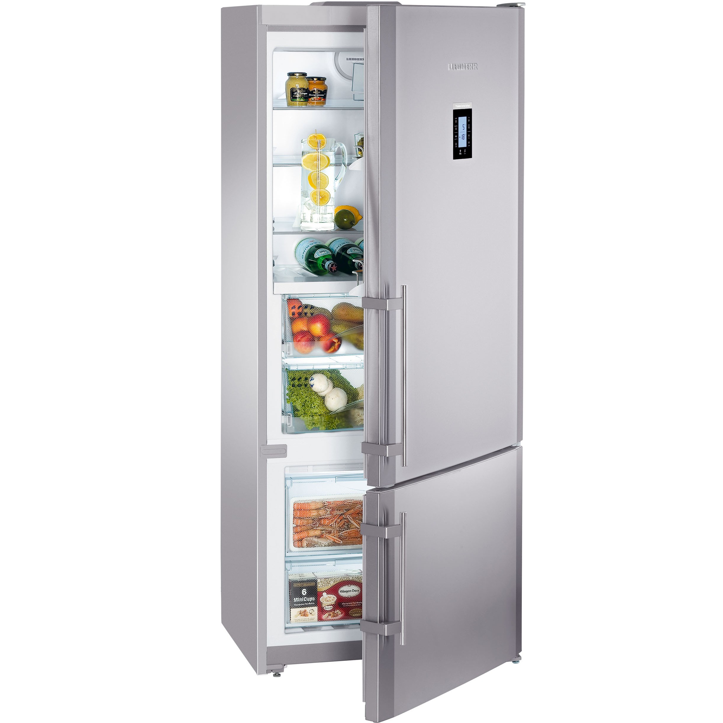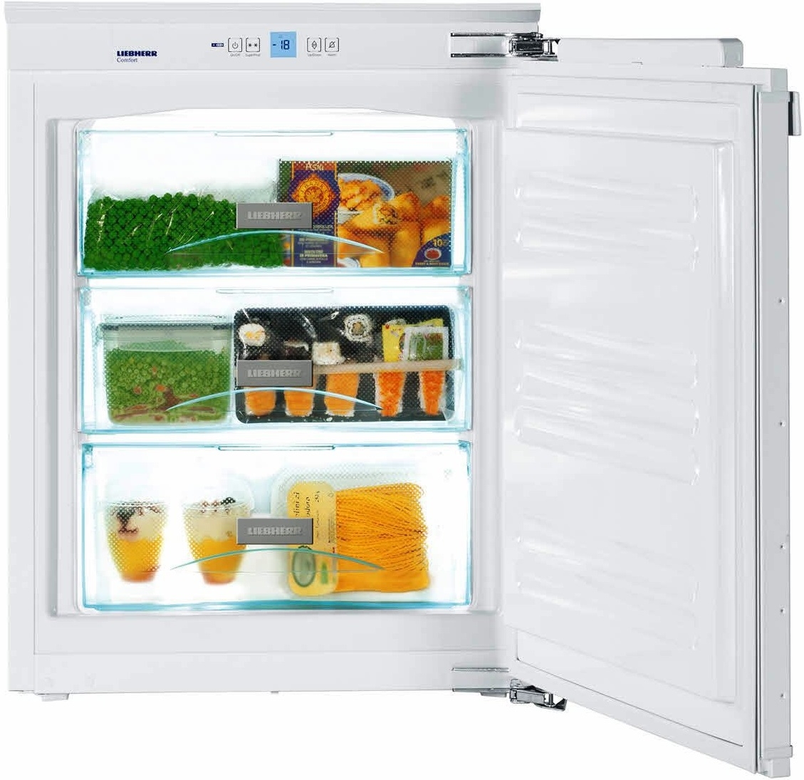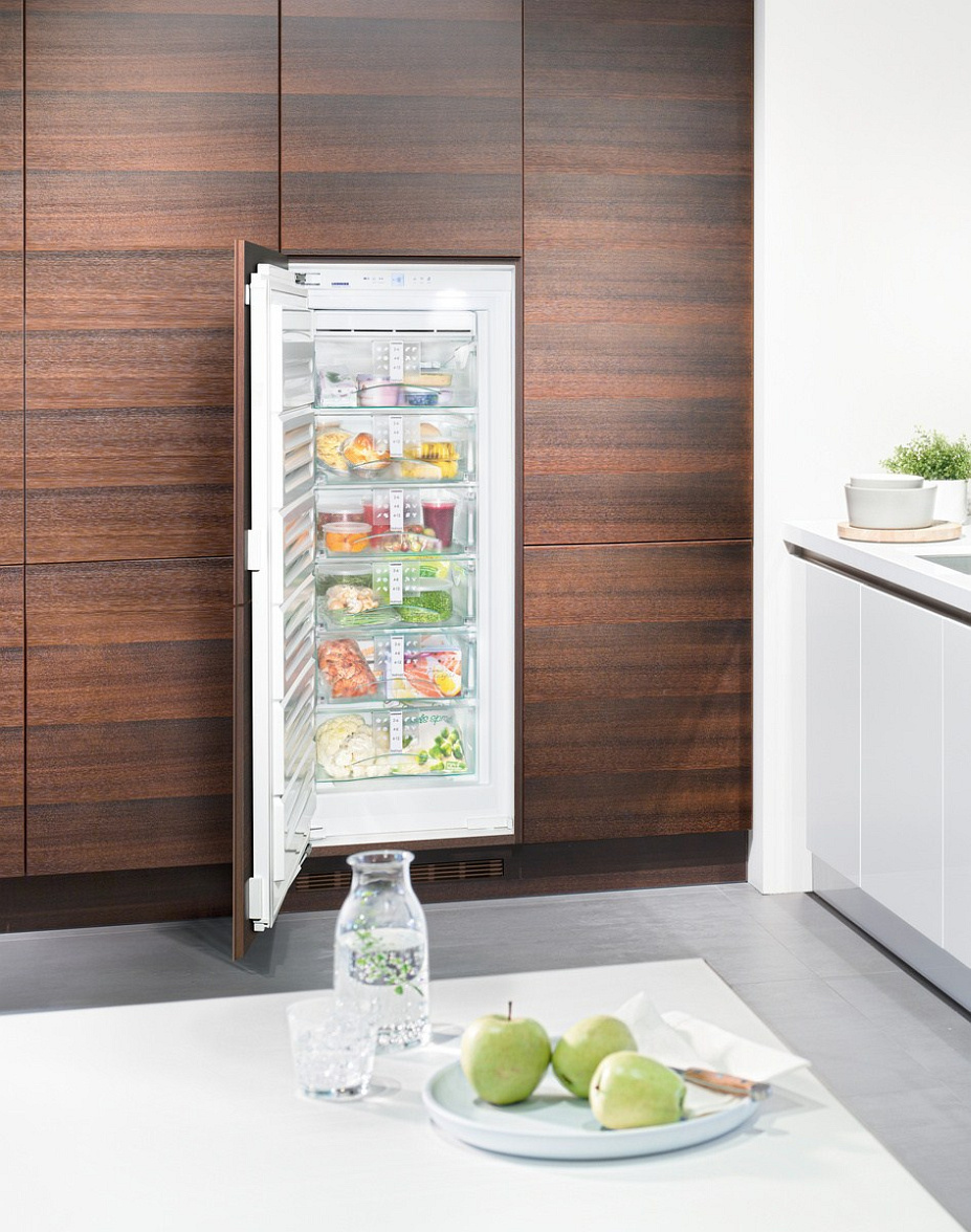 Die Schachteln werden aus den Nuten entfernt, sie können mit dem gesamten Inhalt auf den Tisch gestellt werden, ohne das Produkt in eine separate Schüssel zu geben. Das Asset von Liebherr verfügt über eine riesige Liste relevanter Technologien. Es gibt verschiedene Arten der Gerätesteuerung: mechanische (mehr Budget Modelle), Taster und Touch.