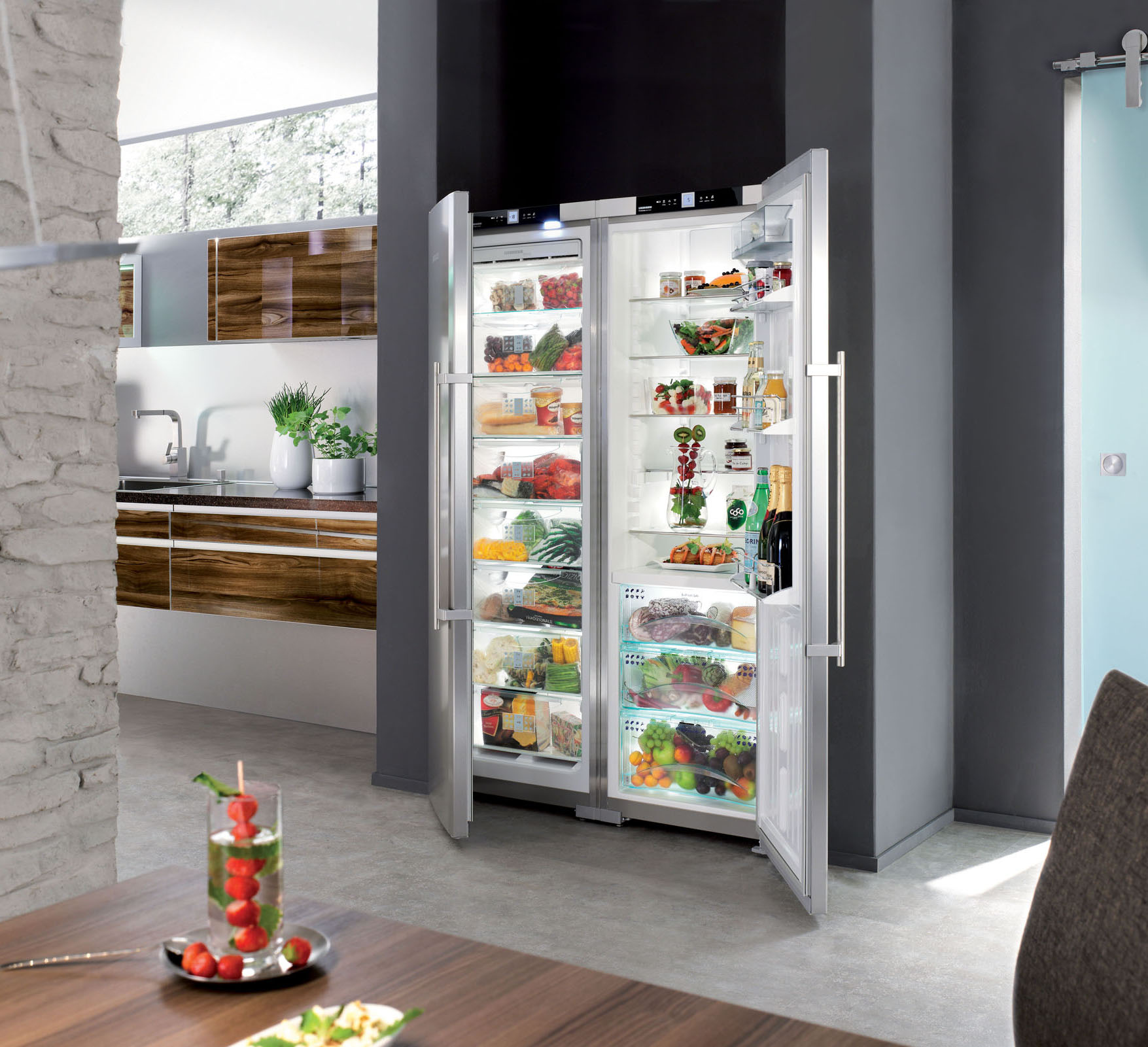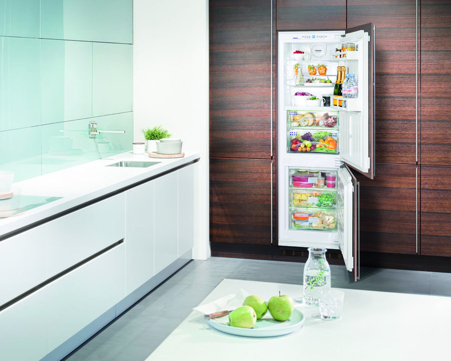 Die Liebherr-Einbaugeräte sind mit dem "Door on Door" -System ausgestattet - die Fassade ist direkt an den Kühlschranktüren angebracht, was ein perfektes Öffnen und Schließen des Gerätes in der Nische gewährleistet.