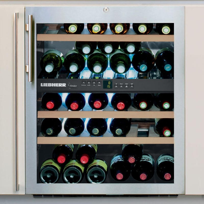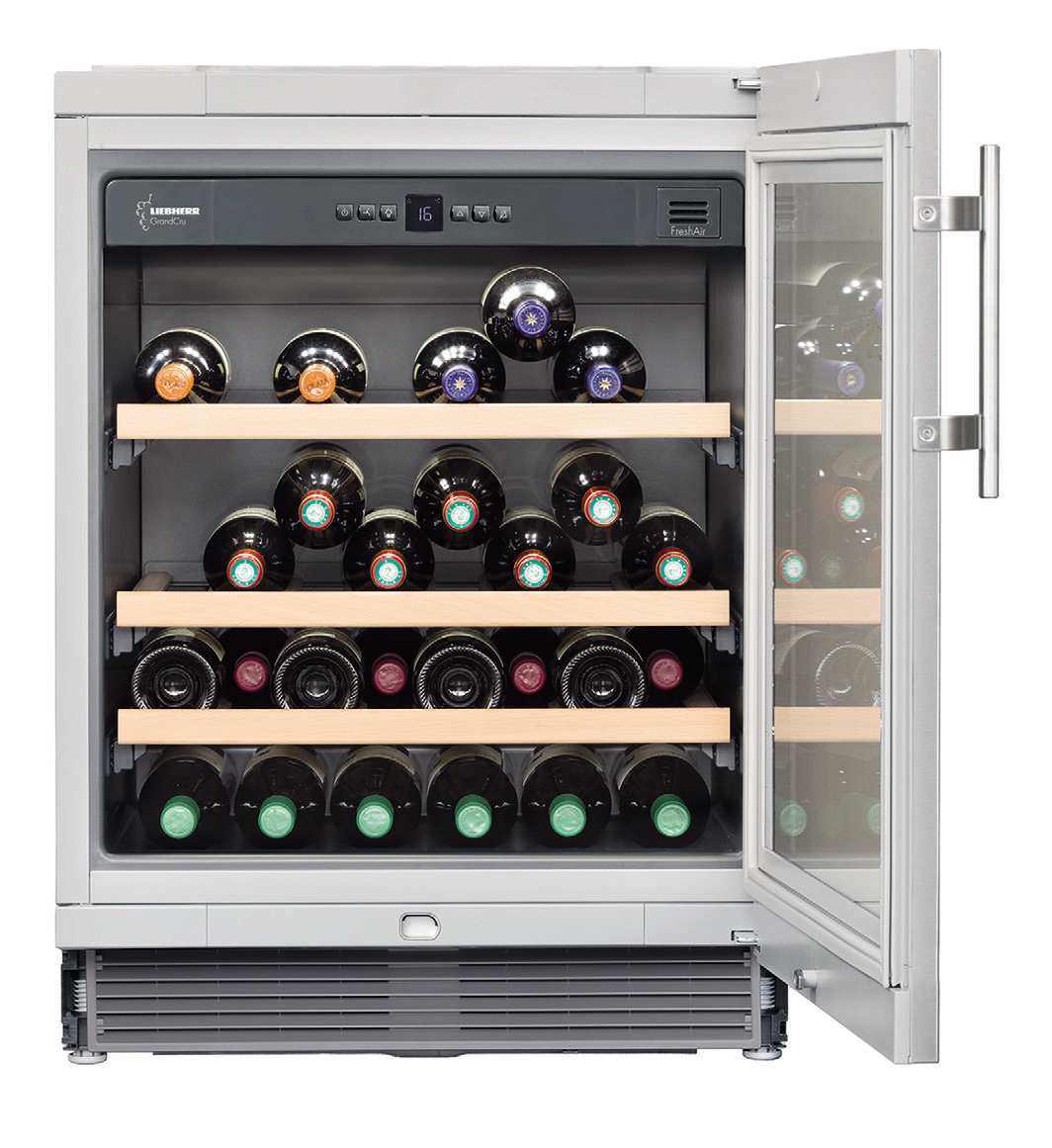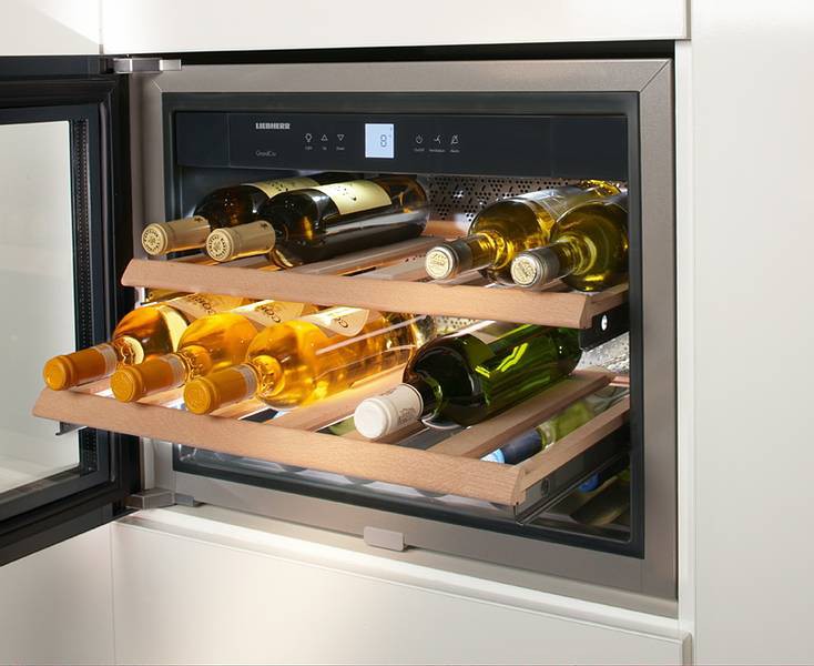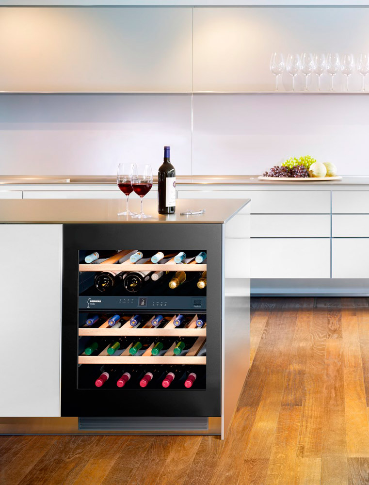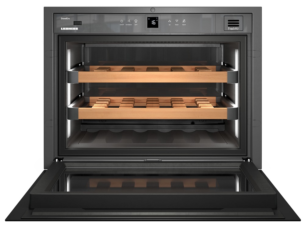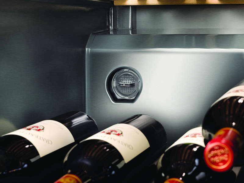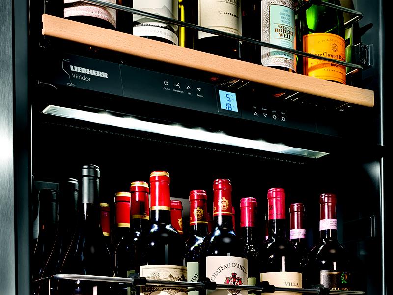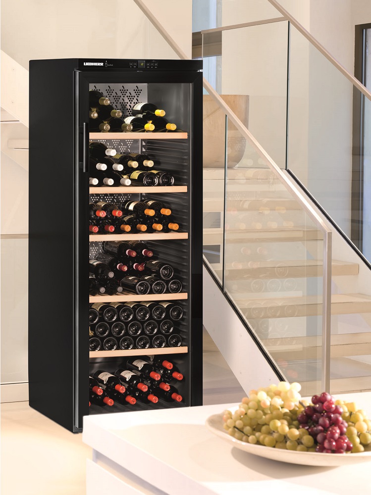Weinkabinett Liebherr - modernisierter Keller zur Aufbewahrung edler Getränke. Die ideale Temperatur und das Klima, das von den Ventilatoren und dem Kohlefiltrationssystem bereitgestellt wird, bewahren und enthüllen das Bouquet der Aromen.