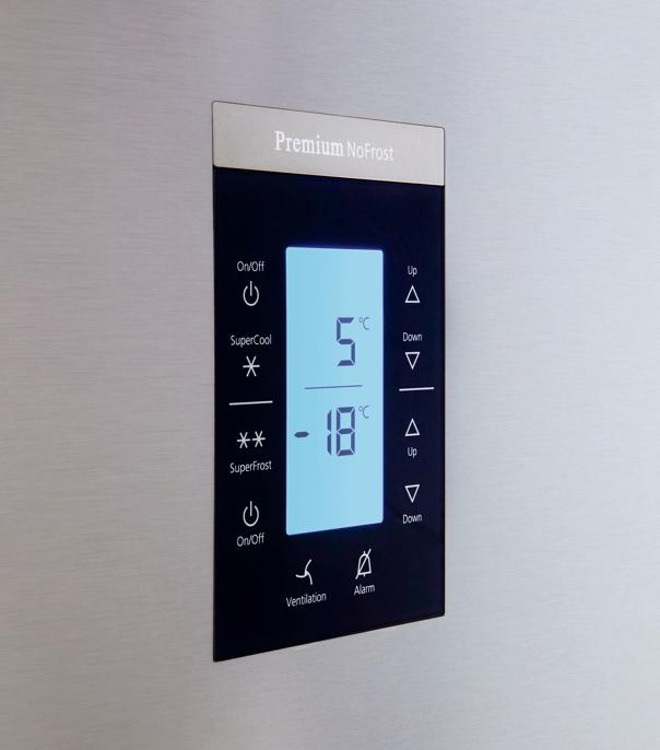 Hier sind die Kühlschränke mit allen notwendigen Funktionen ausgestattet, angefangen von der Kindersicherung bis zum "Leave" -Modus, in dem der Kühlschrank ein Minimum an Strom verbraucht, aber die Kälte im Kühl- und Gefrierfach hält. Mit dem Touch-Display können Sie die Temperatur mit maximaler Genauigkeit einstellen - bis zu einem Grad.