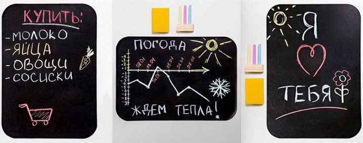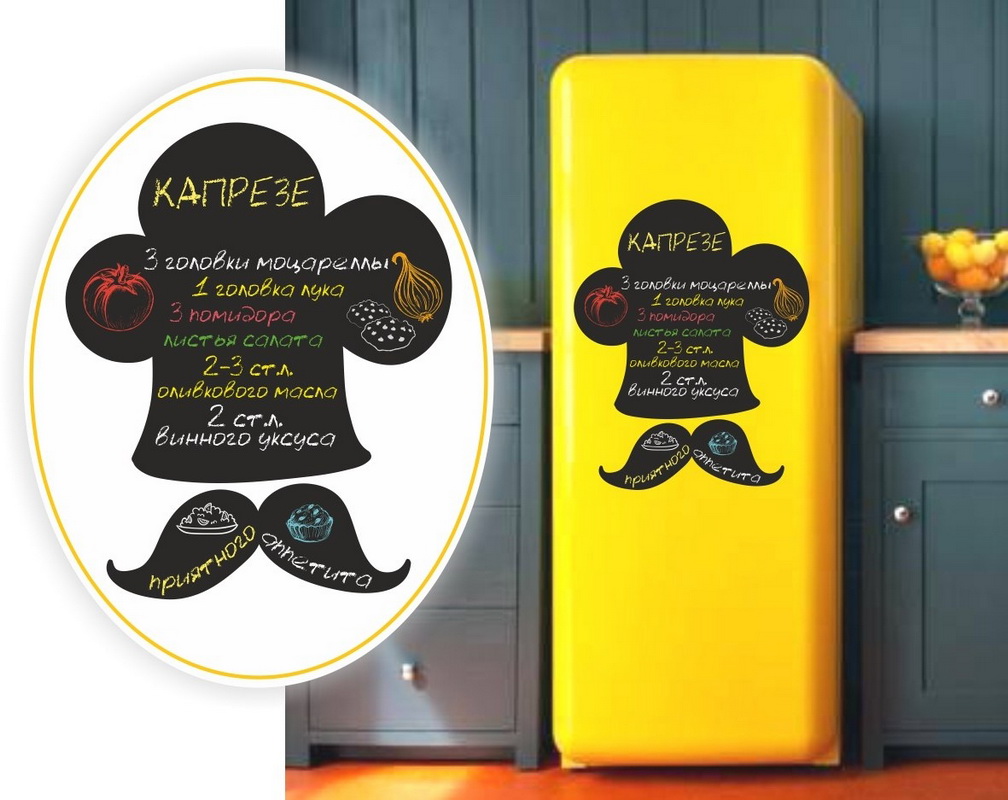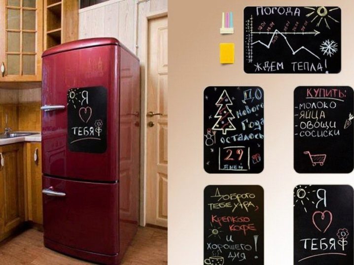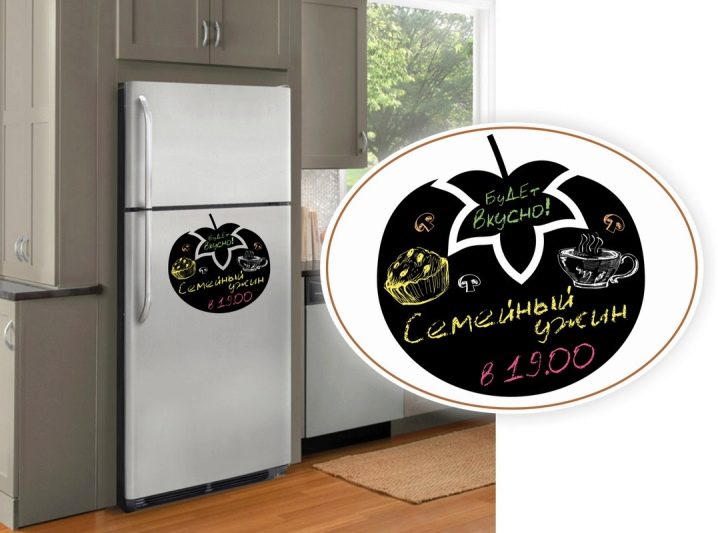 Jeder ist daran gewöhnt, an den Kühlschrankmagneten und Aufklebern zu hängen. Auch an der Tür der Kühlschrank Aufkleber, die eine Vielzahl von Nachrichten und Notizen hinterlassen. Jetzt kamen die Bretter, die mit Hilfe von Magneten an den Kühlschränken befestigt sind. Sie halten gut, verderben nicht die Beschichtung und können eine andere Form haben. Bei Bedarf können sie mühelos entfernt und an einen anderen Ort gebracht werden, und es ist leichter, sich darum zu kümmern. Auf der Oberfläche der Tafel können Sie je nach Produkttyp mit Markern oder Kreide schreiben.Die Beschriftungen und Bilder werden problemlos entfernt, danach kann die Tafel wieder verwendet werden. Anders als Papieraufkleber, die wegwerfbar sind, ist das Leben des Brettes fast unbegrenzt. Die Form dieses Zubehörs kann unterschiedlich sein: in Form eines Herzens, eines Apfels, eines Schmetterlings, eines Tieres, eines Nachtischs und so weiter. Für Kenner des Minimalismus gibt es die üblichen geometrischen Formen: ein Kreis, ein Rechteck, ein Kreis, ein Dreieck. Sie können sie in einem Baumarkt oder in einem spezialisierten Online-Shop kaufen.