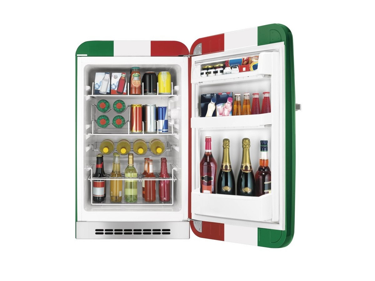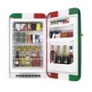 - Smeg. Die Marke aus Italien ist dem russischen Benutzer seit langem bekannt, dank der ausgezeichneten Qualität der Produkte, einschließlich Mini-Kühlschränke.Auf internationaler Ebene genießt das Unternehmen hohes Ansehen. Kleine Kühlschränke haben ein stilvolles und ungewöhnliches Design, eine breite Palette von Originalmodellen, die Präsenz von Modellen, die unter der Tischplatte mit hoher Funktionalität gebaut sind. Die Abmessungen des Mini-Gerätes sind 56x55x82 cm.