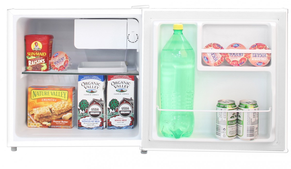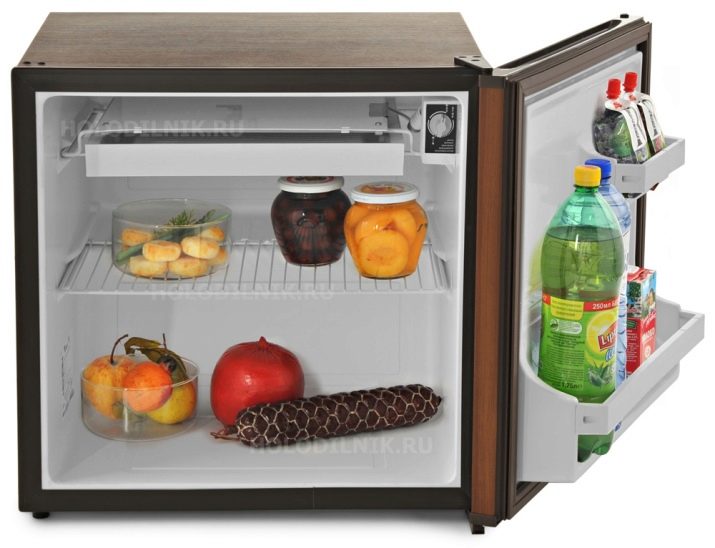 - Einzelfachkühlschränke - kompakt. Sie sind im Allgemeinen ohne Gefrierschrank. Sie sind oft in Hotelzimmern installiert, um Getränke zu kühlen, sowie eine kleine Menge Essen. Modelle, die mit einem Gefrierschrank geliefert werden, sind normalerweise mit Eisformen gefüllt, um bei heißem Wetter die Getränke schneller abkühlen zu können.