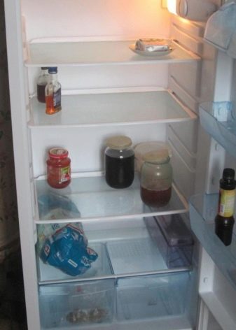 Zu den Minuspunkten des Kühlregals "Mir" kann Lärm zugeordnet werden. Er hat nur einen Kompressor, also ist das Gerät ziemlich laut. Aber wenn die Küche entfernt vom Schlafzimmer entfernt ist, wird der Kühlschrank nicht stören.