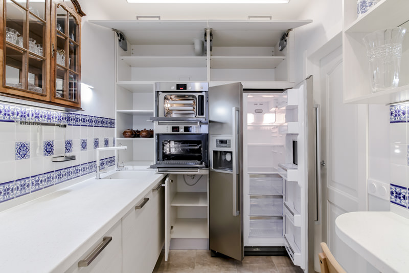 Der Kühlschrank passt perfekt in die Küche. Es kann klassisch weiß oder stilisiert unter einem Baum sein - auf jeden Fall wird es organisch und sehr schön aussehen.
