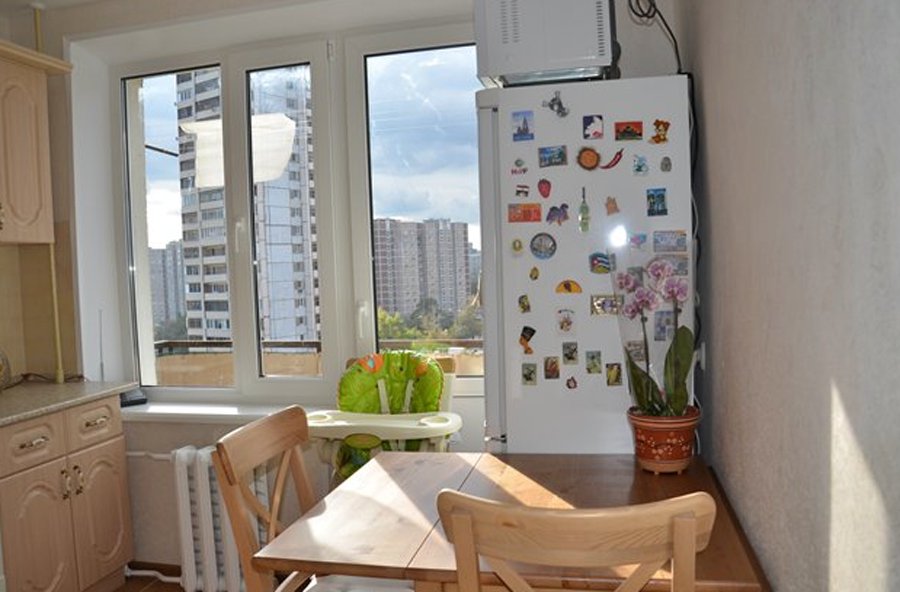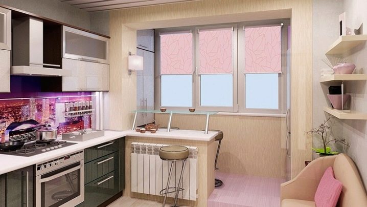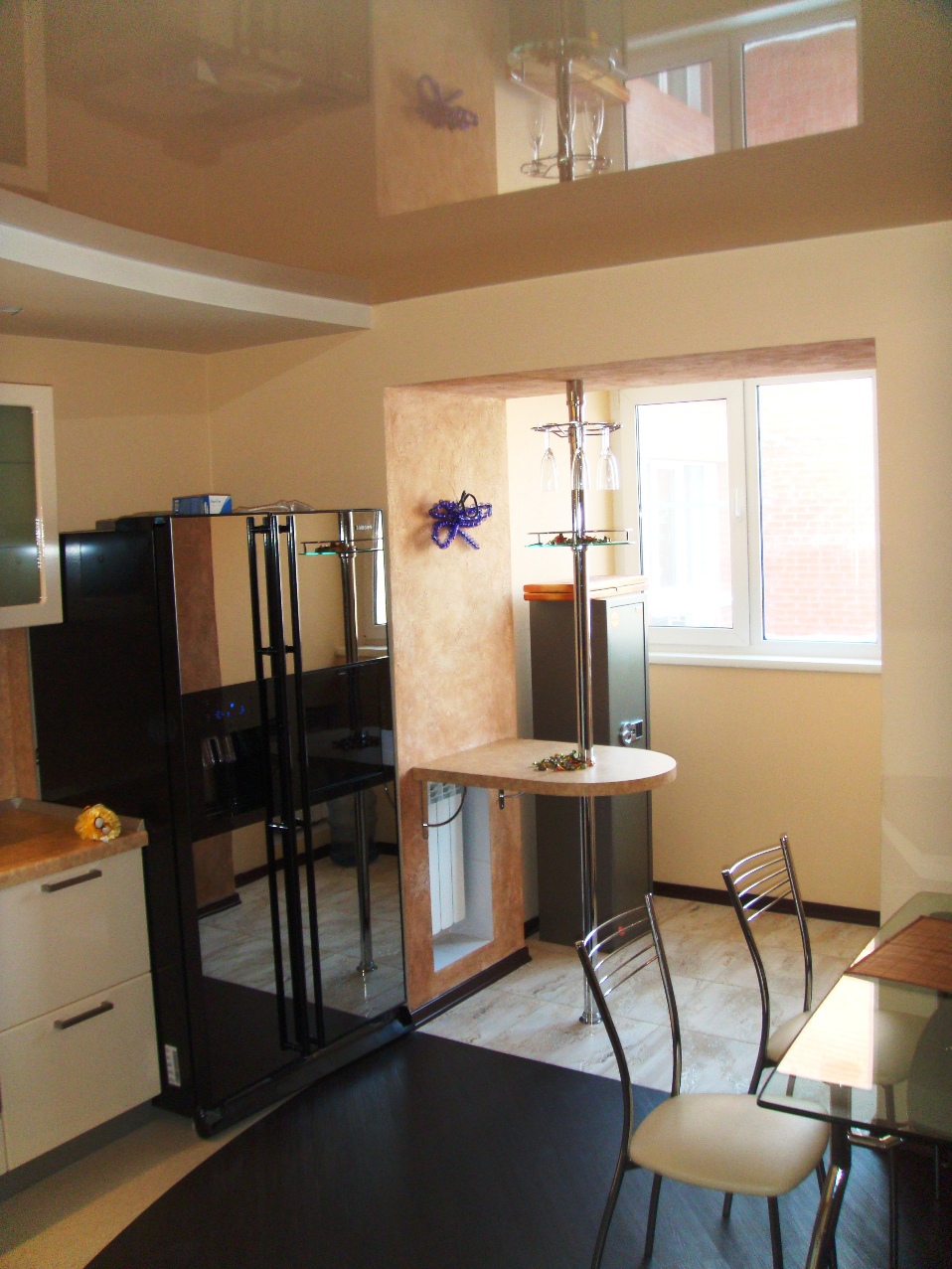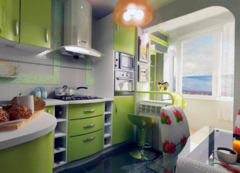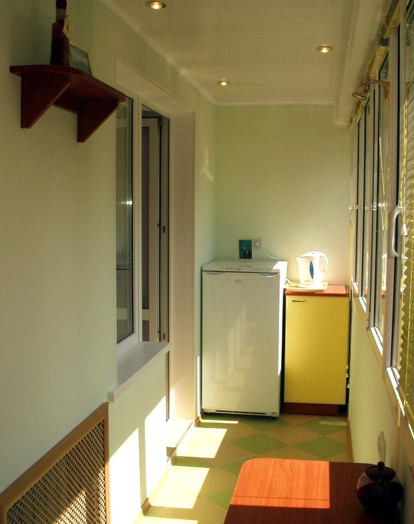 Ein geschlossener Balkon kann durch Einbau eines Kühlschranks, mehrerer Daumen und eines Tisches in einen Küchenarbeitsraum verwandelt werden. So wird es sehr bequem für Sie zu kochen. Und in der Küche selbst wird es möglich sein, einen Tisch mit Stühlen zu installieren. So haben Sie mehr Platz für Familien Mittag-und Abendessen, sowie für Treffen mit Freunden.