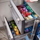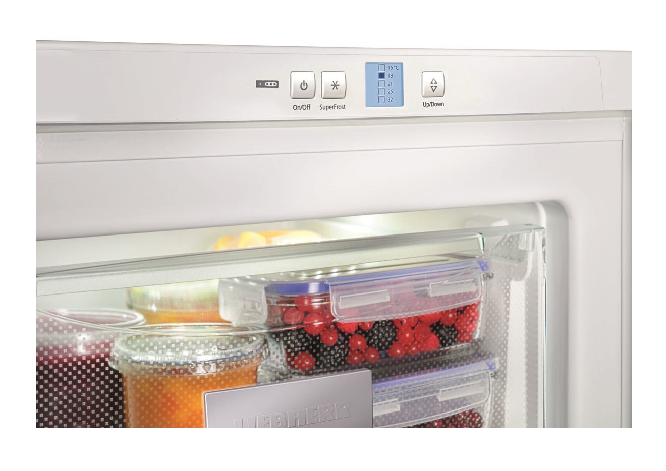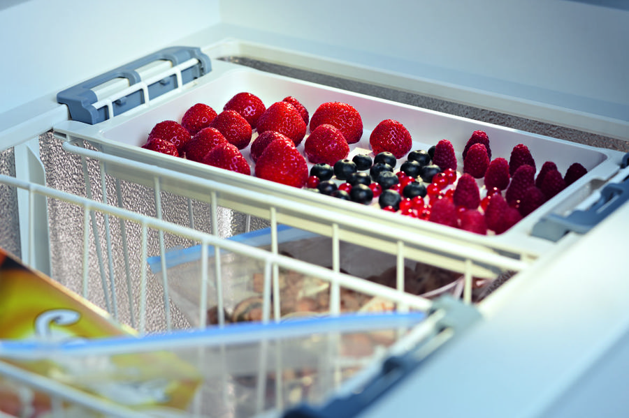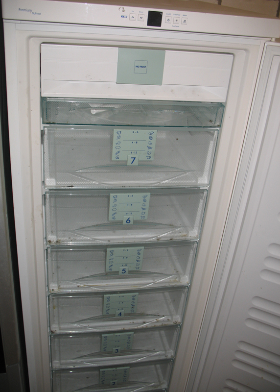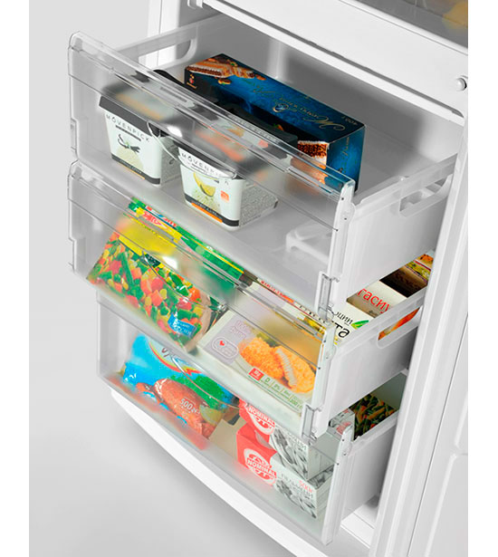 Das oberste Fach im Gefrierfach ist für das schnelle Einfrieren von Beeren, Pilzen, Grüns ausgelegt. Es hat die Form einer Schiebepalette mit einem Deckel. Zubereitete Tiefkühlprodukte aus diesem Fach werden in Behältern oder Beuteln zur Lagerung in anderen Regalen verpackt.