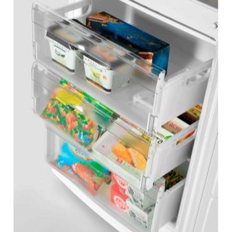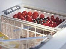 Für den Gefrierschrank gibt es grundsätzlich zwei Arten von Strukturen: Schubladen (Container) und gewöhnliche geschlossene Regale mit Deckeln. Die Boxen bestehen aus Kunststoff und Metall.Rost ist unbequem zu waschen, Beeren können durch die Stäbe fallen. Durch die Operation entstandener Frost kann die Bewegung der Kiste behindern.
