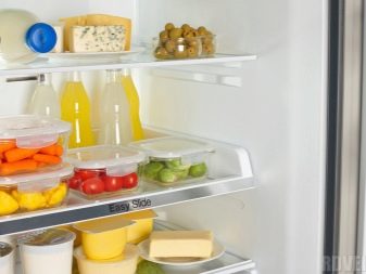 Die Regale aller modernen Kühlschränke werden mit Hilfe von zuverlässigen Klemmen befestigt, die ein Ausrollen über die Grenzen von Haushaltsgeräten hinaus verhindert.