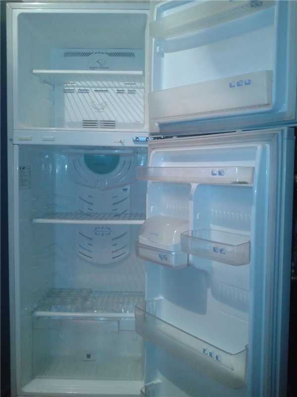 Regale aus Kunststoff - die klassische Version der Innenfüllung des Kühlschranks. Es ist leicht sie zu waschen, sie halten versehentlich verschüttete Flüssigkeiten fest, haben ausreichende Festigkeit.