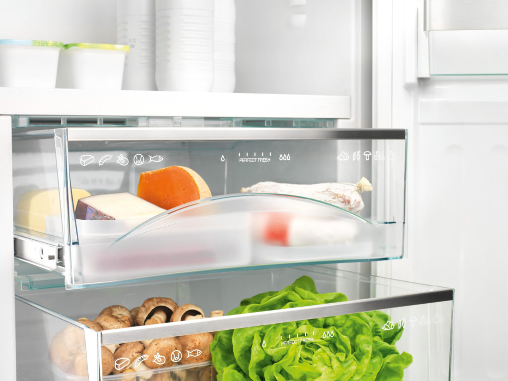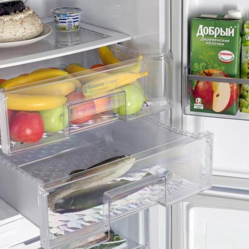 - Versenkbare Container (unterer Teil des Kühlschranks) zum Aufbewahren von Obst und Gemüse.
