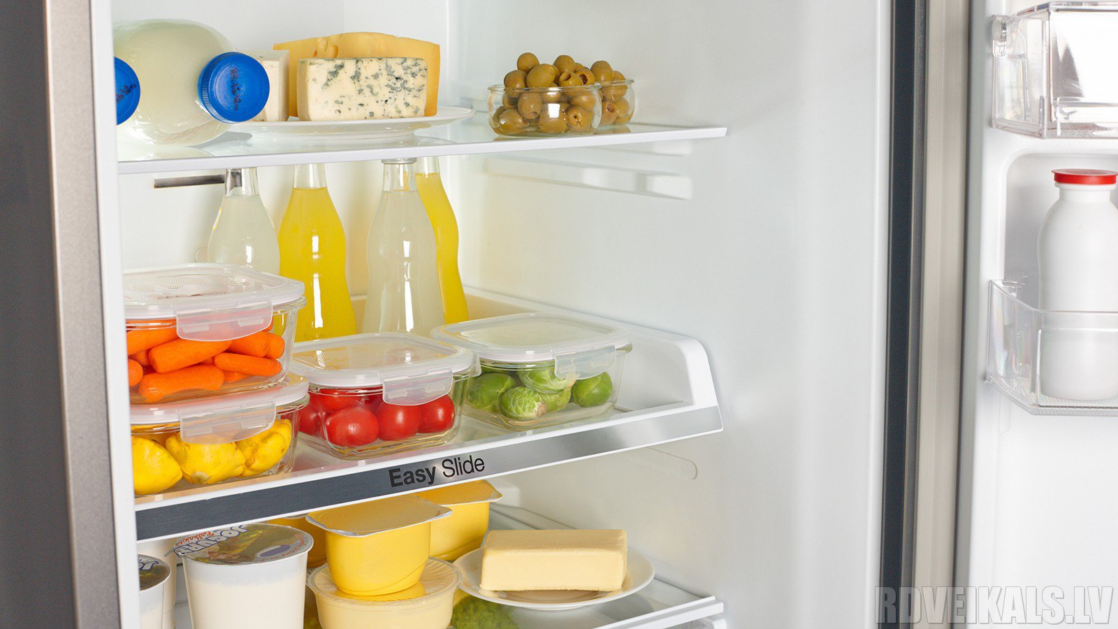 Balkone an der Kühlschranktür sind nicht zur Aufbewahrung von Flaschen und Milchbeuteln geeignet - zdas Produkt braucht die konstante Temperatur, und mit der sich oft öffnenden Tür ist es unmöglich.