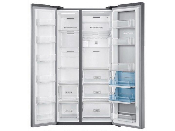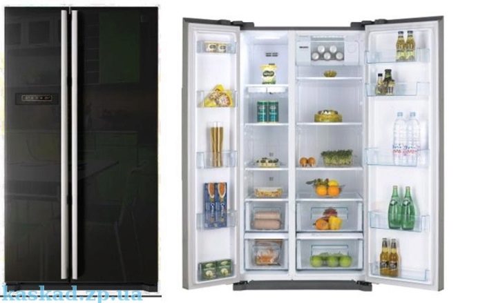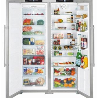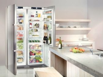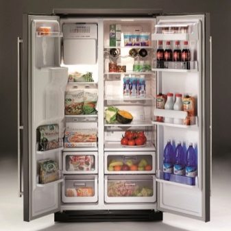 Aber einige Marken produzieren Geräte namens Side by Side, wo ein Gefrierschrank hinter einer Tür und ein Kühlfach hinter einem anderen liegt. Dies ist nicht genau Seite an Seite, aber eine solche Anordnung kann auch sein. Die Abmessungen des Geräts können auch unterschiedlich sein.