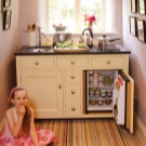 - Sehr unerwünscht Stellen Sie den Kühlschrank in die Nähe der Spüle.