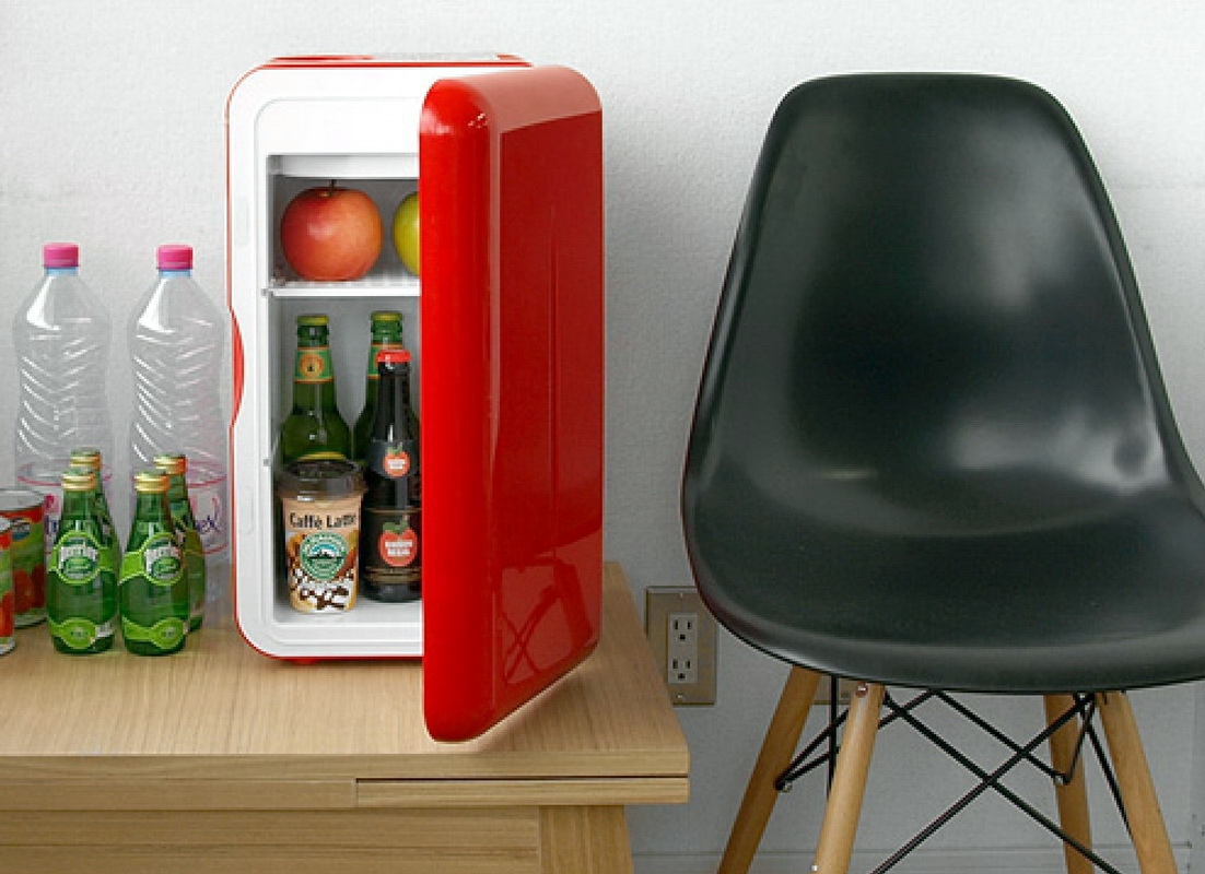 - Ein Miniatur-Kühlschrank, in den nur ein paar Gläser Getränk passen.