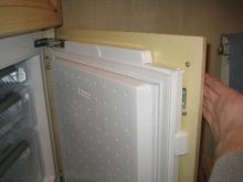 - Das Haushaltsgerät sollte nicht fest auf dem Möbel platziert werden, Lücken sollten gelassen werden, Auf diese Weise dringt die Luft von allen Seiten des Kühlschranks ein und das Gerät wird nicht überhitzen. Um die notwendige Belüftung der Luft zu gewährleisten, wird ein Mindestabstand von 5 Zentimetern benötigt.