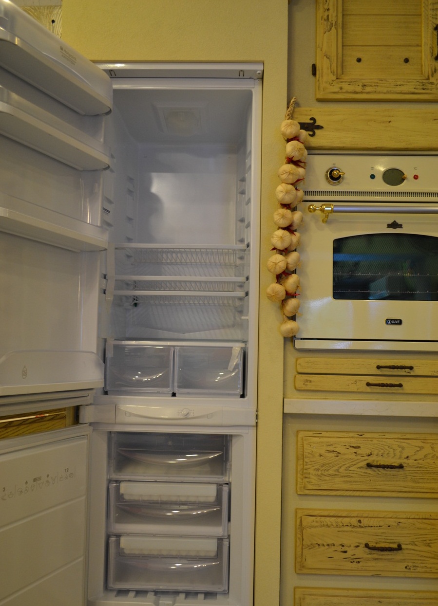 Die meisten Besitzer von Embedded-Kühlgeräten von Ariston sprechen positiv darüber. Die Technik hat ein attraktives klassisches Design, geringe Geräuschentwicklung.