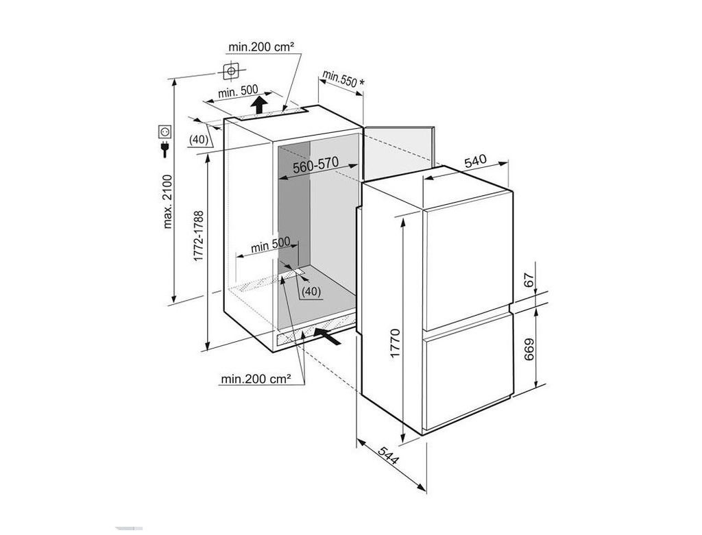 - Heimlichkeit. Der Hauptvorteil der eingebetteten Modelle von Liebherr besteht darin, dass sie unsichtbar sind. Die Entwickler haben jedes Detail durchdacht mit dem Ergebnis, dass das Gerät im Raum fast nicht auffällt und sehr harmonisch hineinpasst;