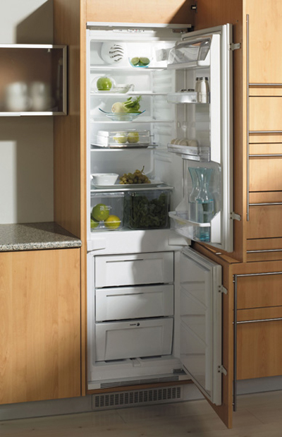 Der Hersteller bietet auch eingebaute Kühlschränke an, die sich durch ein abtauendes Abtauungssystem auszeichnen.