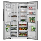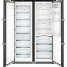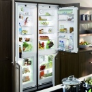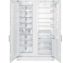 Das Schweizer Unternehmen produziert Side-by-Side-Modelle mit zwei Generatoren, die es ermöglichen, Speisen im Gefrierschrank noch besser und schneller einzufrieren und die optimale Temperatur im Kühlraum konstant zu halten. Der Kühlschrank besteht aus zwei Teilen: Es gibt Regale für Essen auf der Oberseite und ein kleines ausziehbares Fach mit einem System "Super frisch"Unten befinden sich Kästen für Gemüse, Obst und andere Produkte, die besondere Temperaturbedingungen erfordern. Der Gefrierschrank ist mit mehreren Schubladen über die gesamte Länge des Geräts ausgestattet und ermöglicht es Ihnen, bis zu achtzehn Pfund Futter zu halten. Dieses Modell ist mit Eiswürfelbereiter ausgestattet.