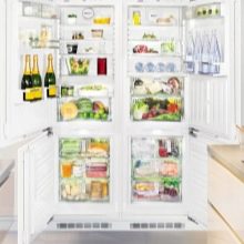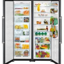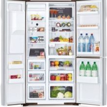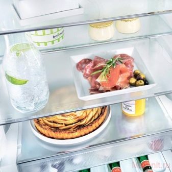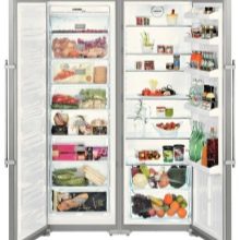 Die Öffnungsseite kann unabhängig gewählt werden, da die Türen leicht ausgewogen sind. Jeder Kühlschrank ist mit allen notwendigen Abteilungen mit Regalen, Schubkästen, Fächern für Obst, Gemüse, Milchprodukte usw. ausgestattet. Aber ihr Standort kann von verschiedenen Herstellern abweichen, so dass Sie sich beim Kauf eines bestimmten Modells unbedingt für den Komfort des ausgewählten Geräts entscheiden sollten. Natürlich erlauben die meisten Unternehmen Hostessen, den Standort der Regale manuell zu ändern.
