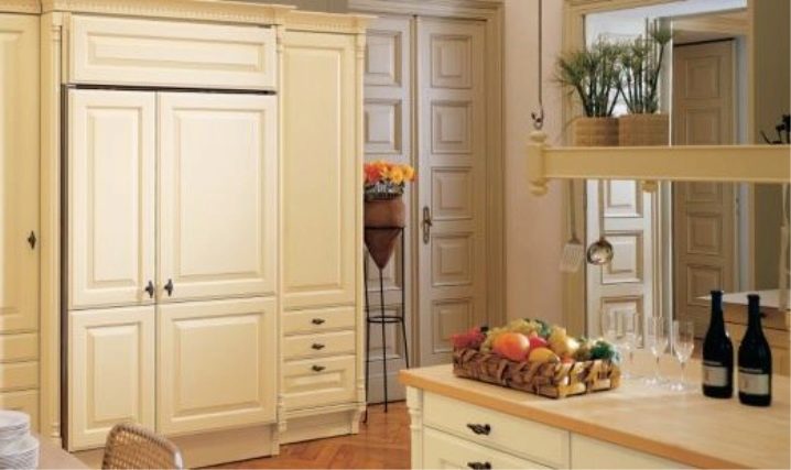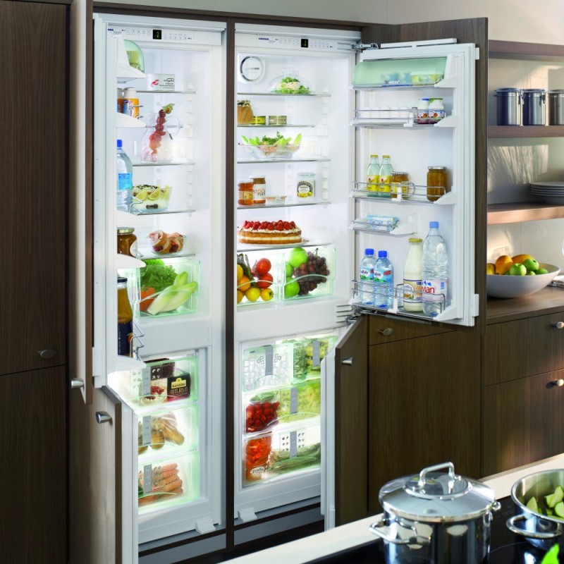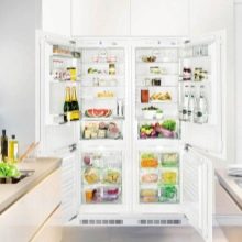 Der Kühlschrank ist ein wichtiger Bestandteil jeder Küche, der die Konservierung von frischen Lebensmitteln sichert und es ermöglicht, in der heißen Jahreszeit verderbliche Waren zu sparen. Es ist wichtig, dass diese Technik von guter Qualität ist und alle notwendigen Produkte und Fertiggerichte aufnehmen kann. Ein großer Kühlraum mit einem geräumigen Gefrierfach ist der Traum jeder Gastgeberin, deren Familie mehr als vier Personen hat und die gerne kocht und auch Rohlinge für den Winter herstellt. Wenn die Größe des Küchenraumes Ihnen erlaubt, große Geräte zu setzen, dann empfehlen viele Designer und Köche, breite Zweikammergeräte zu kaufen, und damit sie organisch mit dem Rest des Küchensets kombinieren, können Sie einen eingebauten Kühlschrank nebeneinander kaufen.