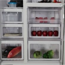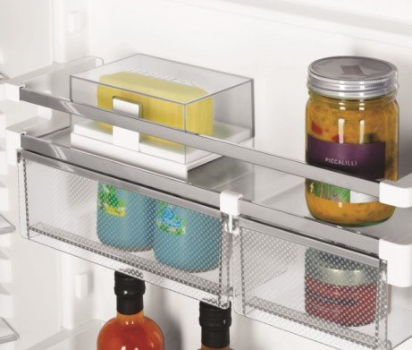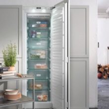 Es gibt auch eine große Auswahl an internen Füllungen sowie die Möglichkeit, die Höhe der Regale und die Position der Fächer für einzelne Produkte selbst einzustellen. Einige Zonen haben ihre eigene einstellbare Temperatur und Luftfeuchtigkeit, dies gilt sowohl für den Kühlschrank als auch für den Gefrierschrank. Im Inneren befinden sich separate Aufbewahrungsorte für Fleisch, Fisch, Gemüse und Obst sowie Milchprodukte.