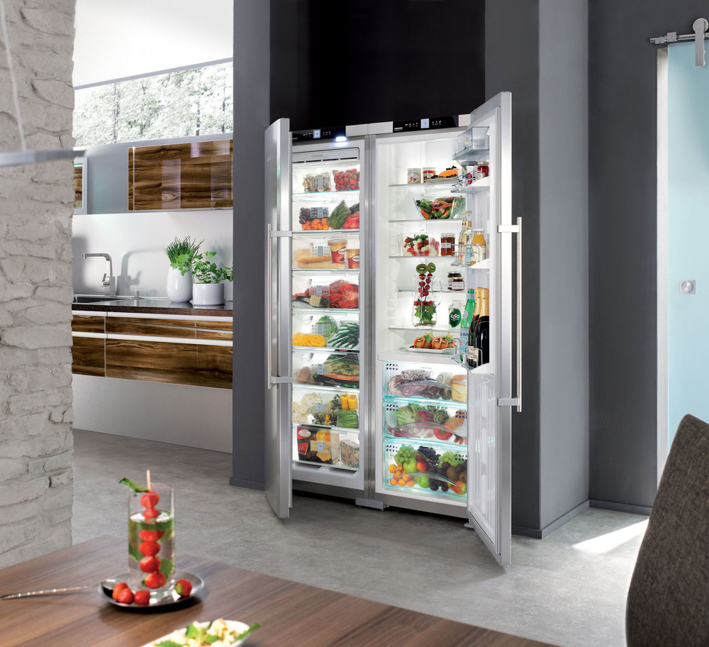 Seite an Seite bedeutet auf Englisch "Seite an Seite", was eine vertikale Anordnung der Türen bedeutet. Diese Art von Technologie hat lange einen ehrenvollen Platz in seiner Nische eingenommen und ist das bevorzugte Produkt für die meisten Familien geworden.Es handelt sich um eine Zwei-Kammer-Technik, bei der die Kühl- und Gefrierräume vertikal nebeneinander, seltener horizontal und mit zwei Drehtüren angeordnet sind. Bequemlichkeit, Geräumigkeit und Funktionalität dieser Technologie sind nicht zu leugnen, und die Möglichkeit, sie in das Headset zu integrieren, bietet noch mehr Vorteile, denn in diesem Fall wird es trotz seiner recht großen Abmessungen organisch in der Küche aussehen.