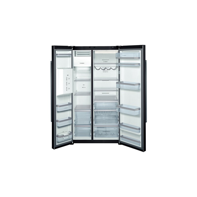 Die deutsche Firma Bosh ist bekannt für ihre hochwertigen Geräte. Dieses Modell des Kühlschranks Seite an Seite Aus einer Reihe von ausgezeichneten Haushaltsgeräten für die Küche wurde keine Ausnahme. Das Gerät verfügt über ein Belüftungssystem für kalte Luft, mit dem Sie die Frische von Produkten für lange Zeit erhalten können. Das Super-Freezing-System ermöglicht das schnelle Einfrieren von bis zu zehn Kilogramm pro Tag. Das Gerät ist mit einem Eisgenerator mit mehreren Filtern für sauberes Wasser ausgestattet.