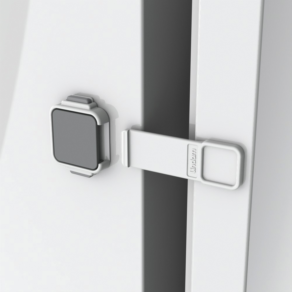 - Am günstigsten ist ein flexibles Kunststoffband. An beiden Enden ist eine klebrige Schicht angebracht, aufgrund derer das Schloss am Kühlschrank gehalten wird.