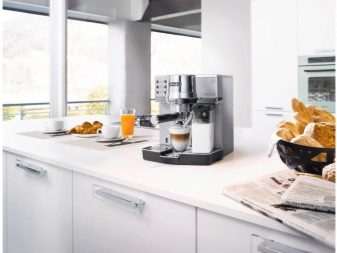 Eine einfache stationäre Kaffeemaschine von kompakterer Größe wird zum Haus passen. Füllung halbautomatische Maschine wird Ihnen helfen, die gleichen leckeren und aromatischen Espresso, sowie eine "smart" vorzubereiten.