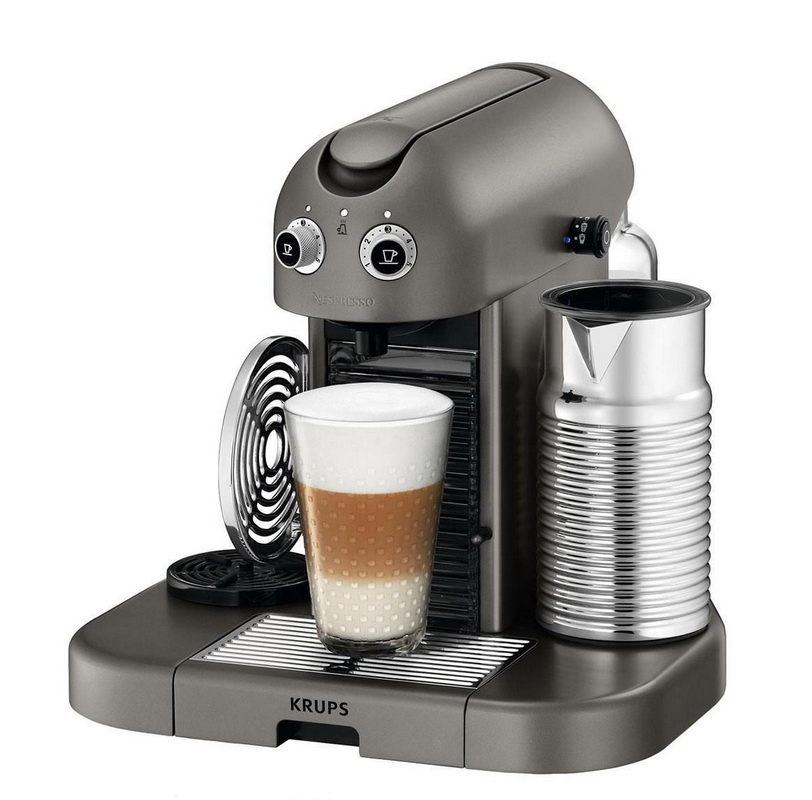 Die kompakten Krups Nespresso Kaffeemaschinen vom Kapseltyp verwenden das Thermoblock-System und verfügen über einen Vorratsbehälter für gebrauchte Kapseln. In einigen Modellen, beispielsweise Grand Maestria, ist ein Treibmittel integriert.