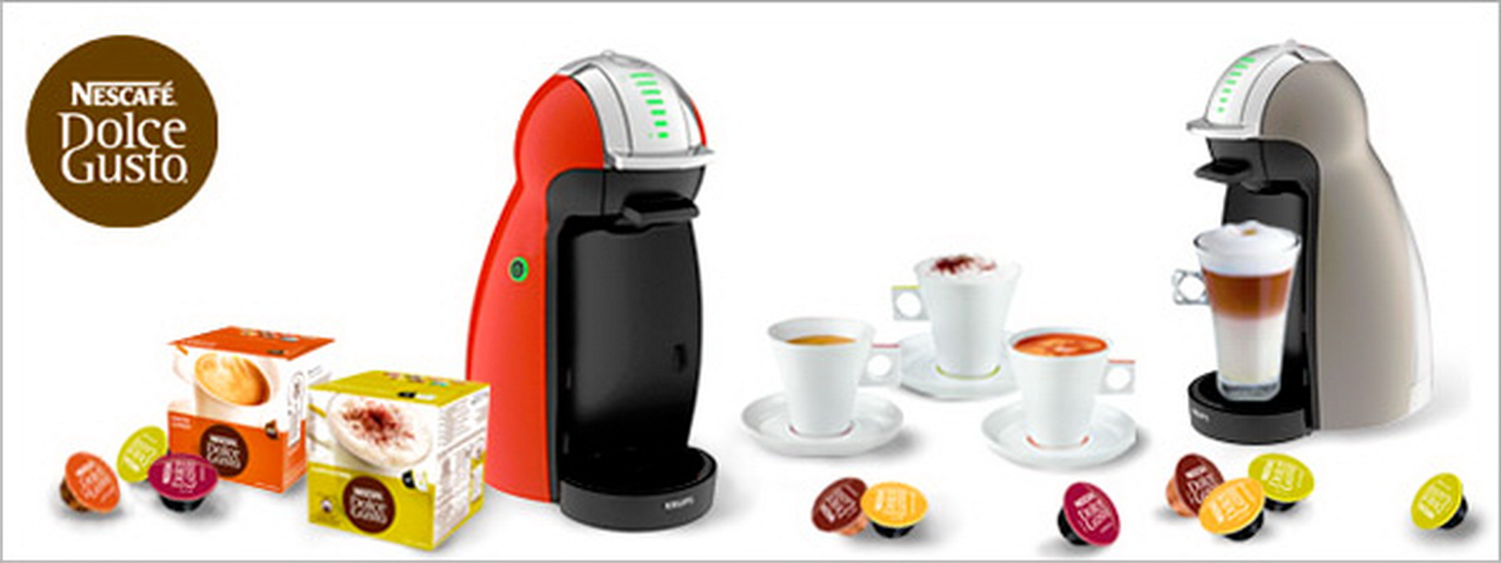 - Nescafé Dolce Gusto, Arbeiten an Nescafe Kapseln. Alle Varianten dieser Kaffeemaschinenlinie sind attraktiv mit hellem Design und umfangreichen Funktionen. So sind die Geräte der Mini Me-Serie nicht nur überraschend kompakt, sondern auch praktisch, denn sie sind mit einem automatischen Wasserspender ausgestattet, der je nach Kaffeesorte die Siedewassermenge reguliert.