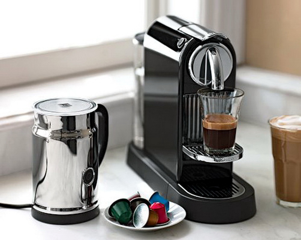 - Der nächste Konkurrent dieser Linie ist das Nespresso-System.von der Firma entwickelt Nestlé vor mehr als 30 Jahren. Die Preisspanne dieser Kaffeemaschinenreihe ist sehr groß, von 5.000 bis 50.000 Rubel. Dies sind zuverlässige und leistungsstarke Einheiten mit exzellentem Design und Funktionalität. Für sie gibt es auch eine große Auswahl an Kaffeekapseln. Die Kaffeemaschine arbeitet mit teuren Marken- und Budget-Kapseln. Eines der bekanntesten Modelle dieser Art - Nespresso Inissia. Die kleinste Sorte Krups Nespresso - Das ist ein Modell Elf. Es zeichnet sich durch seine elegante Silhouette und die Fähigkeit aus, exquisiten Espresso zuzubereiten. Neben dem ultrakompakten Design sind seine Vorteile: