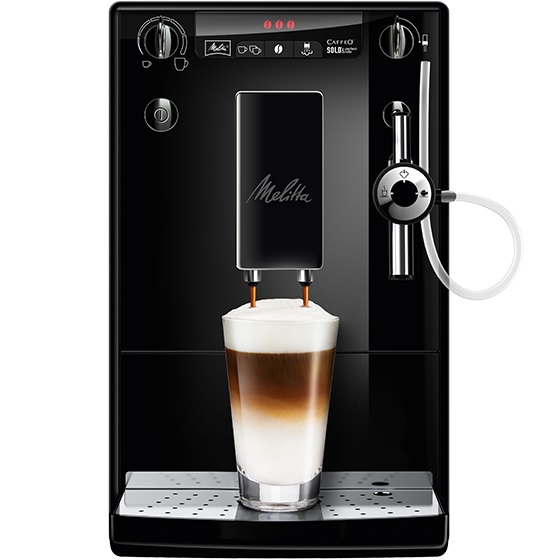 - "Caffeo Solo Perfekte Milch Schwarz". Hochwertige und praktische schwarze Kaffeemaschine mit verbessertem Cappuccinator. Manuelle Lautstärkeregelung ist vorhanden. Sie kann gleichzeitig zwei Tassen Kaffee produzieren.