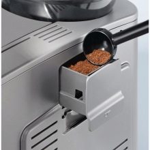 - Es ist notwendig, die Körner in die eingebaute Kaffeemühle dieses Geräts zu gießen. Wenn dieses Element fehlt, sollte gemahlener Kaffee verwendet werden.