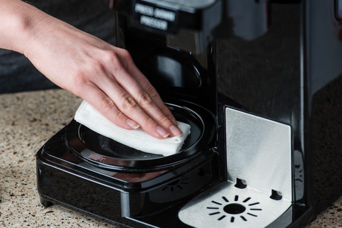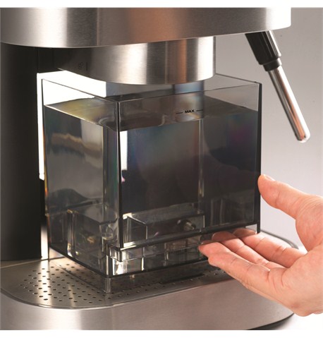 - Vergessen Sie nicht, den Becher zu erwärmen, hierfür müssen Sie ein wenig kochendes Wasser über ein Ablassventil einfüllen.