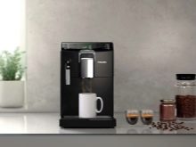 - Auf dem sechsten Platz befindet sich die Einheit "HD8763"berühmte italienische Marke Saeco. Er hat große Macht. Der Tank ist bereits für 1,8 Liter Wasser ausgelegt, was diejenigen zufriedenstellen kann, die es gewohnt sind, zu Hause große Versammlungen abzuhalten und jeden mit frischem Kaffee zu verwöhnen. Die Funktionalität ermöglicht es Ihnen, die Stärke des fertigen Getränks und den Mahlgrad der Körner zu wählen. Sie können zwischen drei Modi wählen: normalem Kaffee, starkem Espresso oder Cappuccino. Auch die verwendete Wassermenge kann unabhängig voneinander eingestellt werden. Natürlich ist ein solches automatisches Modell in der Lage, sich selbst zu entzundern. Ein großes Wasserreservoir und die Kraft des Gerätes können gleichzeitig zwei Personen mit einem Getränk versorgen. Dieses Modell kostet durchschnittlich 43.000 Rubel.