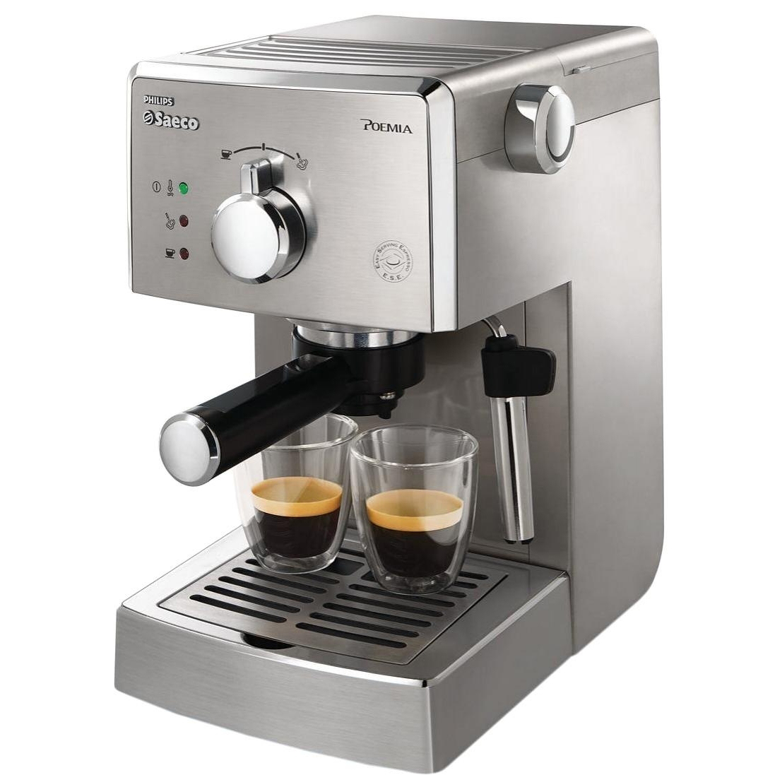 - "Saeco Poemia" berühmte holländische Firma Philips Ranked Benutzer auf dem neunten Platz in der Beliebtheit. Philips Produkte gelten als die besten in Zuverlässigkeit und Benutzerfreundlichkeit. Für die Arbeit kann dieses Haushaltsgerät nur gemahlene Rohstoffe oder Schoten verwenden, die in einer speziellen Einmalverpackung gemahlene und geröstete Körner gepresst werden. Wassertank hat eine Größe von einem Liter. Die Kosten für ein solches Modell sind bereits viel höher als die der ersten betrachteten Probe - 19.000 Rubel.