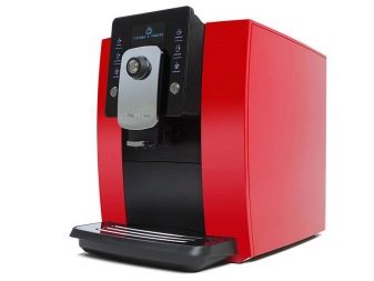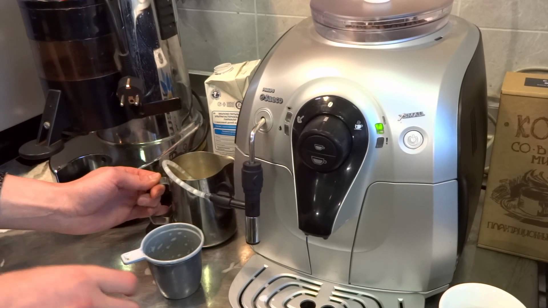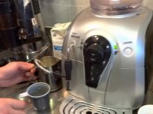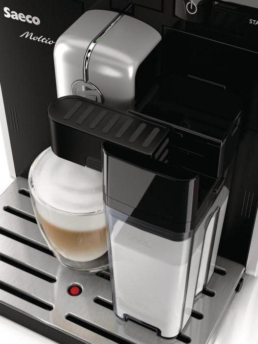 An Stelle des Panarellos werden Autokapsukatoren mit Milchzufuhr aus einem separaten Behälter installiert. Die benötigte Milchmenge durchläuft das Silikonrohr, danach schäumt es im Cappuccinomacher auf, an dessen Ende der Schaum in den Becher gegossen wird. Beater-Krug von der Vorderseite der Maschine gesetzt. Der Prozess des Schlagens ist vollständig automatisch und wird ausgeführt, wenn Sie einen einzigen Knopf drücken.