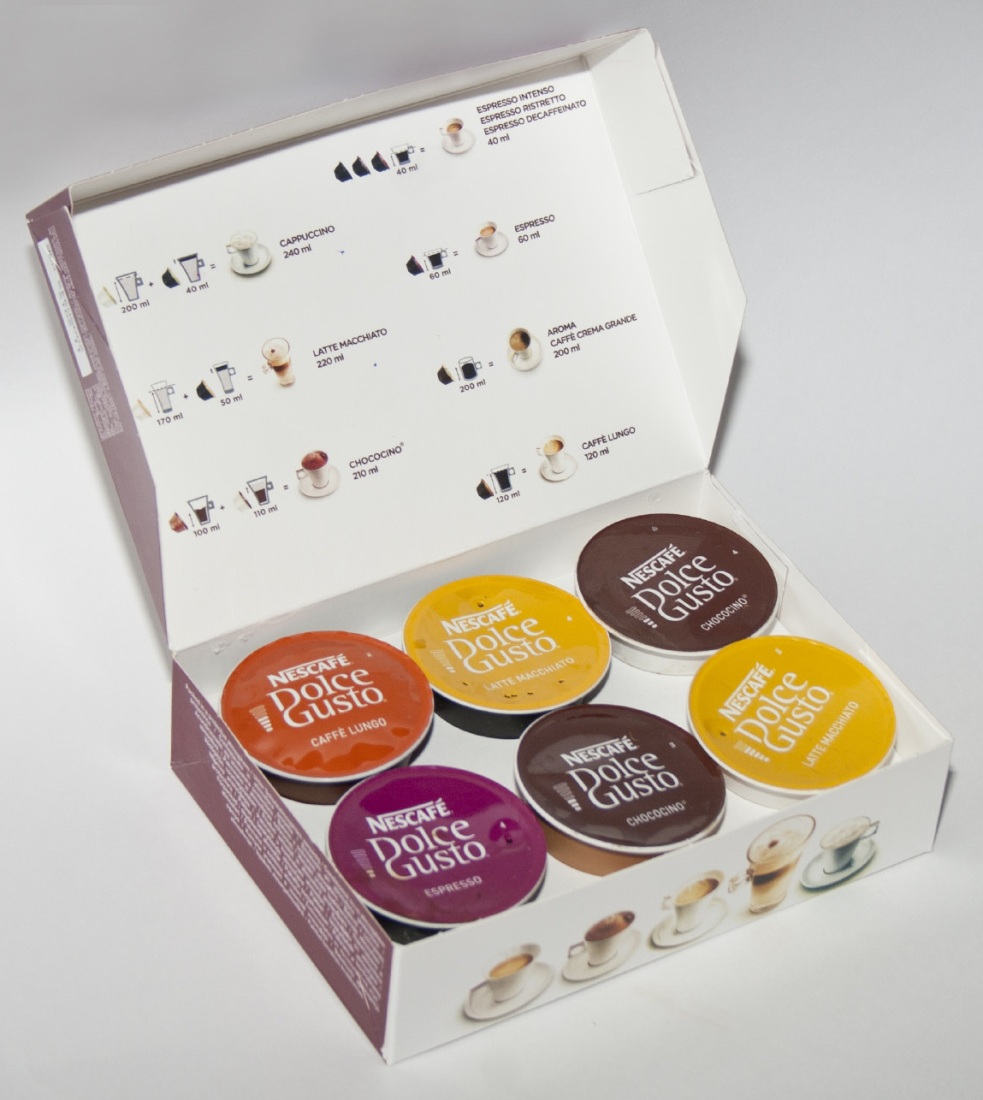 - Eine große Auswahl an Kapseln mit verschiedenen Geschmacksrichtungen. Diese Linie umfasst neben Kaffee auch Kaffeegetränke mit Milch, Cappuccino mit Eis, Cocktails, Tee-Latte.