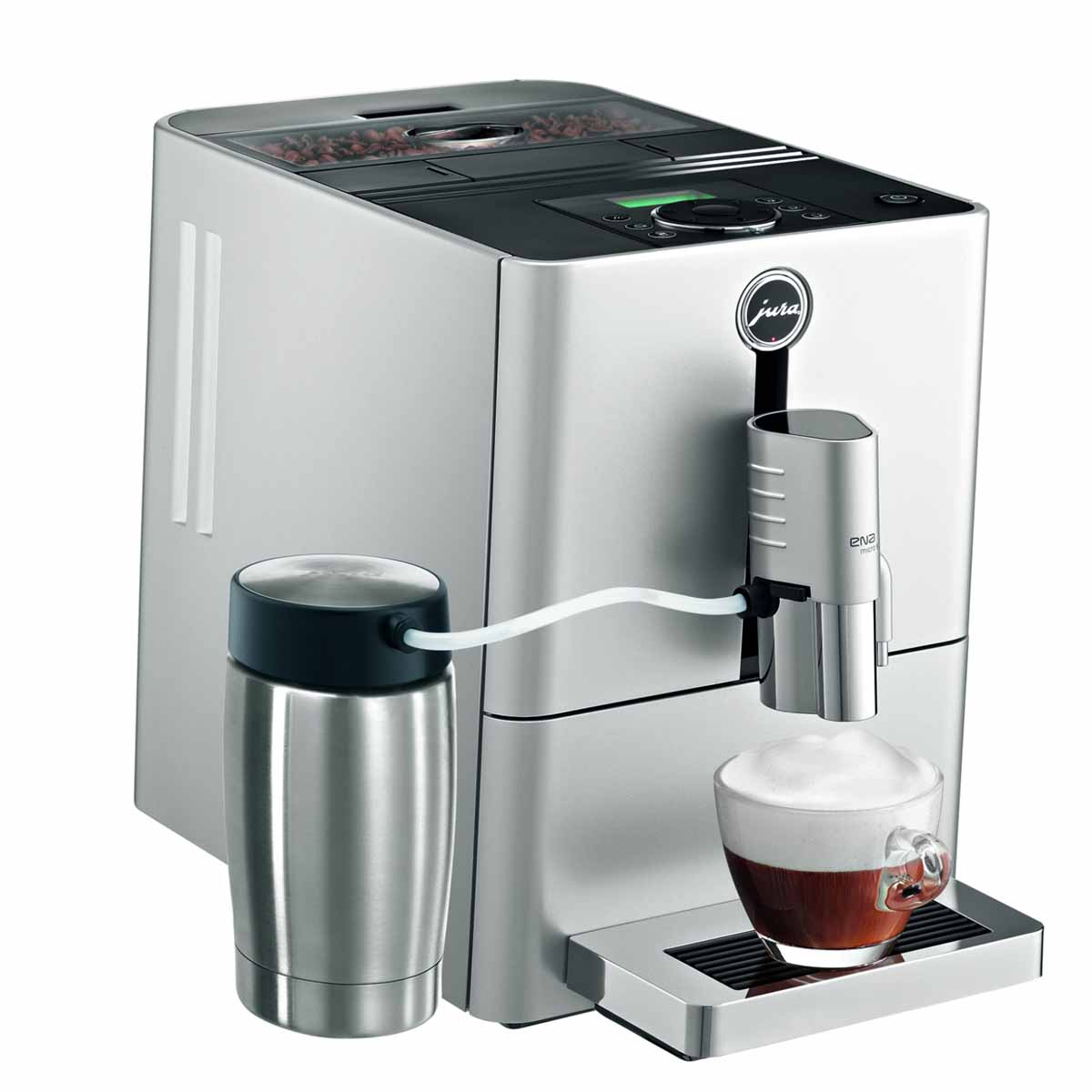 Wenn Sie einen geeigneten Mini-Kaffeebereiter für den Gebrauch auswählen, können Sie Bewertungen von Personen anzeigen, die diese Option bereits erworben haben. Eines der besten Geräte für den Heimgebrauch ist das Gerät. Jura Ena Micro 9 One Touch. Das Volumen der Kaffeemaschine beträgt 1,1 Liter. Ein Merkmal dieses Geräts ist die Verfügbarkeit einer automatischen Art der Zubereitung des Getränks. Diese Option ist ideal für Liebhaber von Cappuccino und Mokachino. Das Getränk kann einfach per Knopfdruck zubereitet werden.