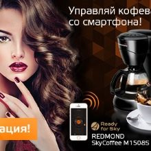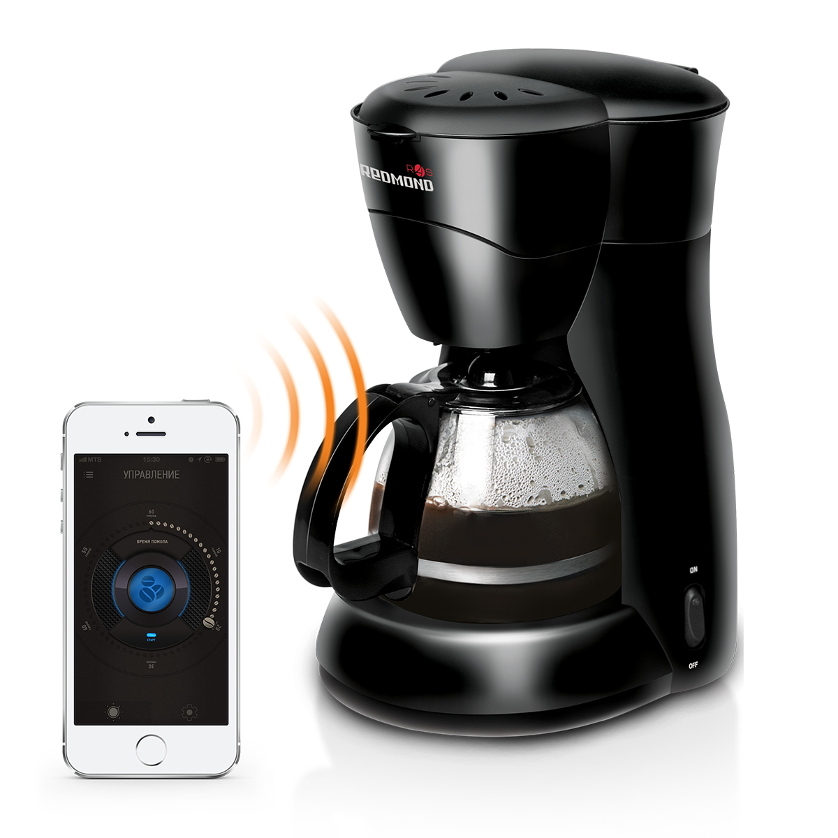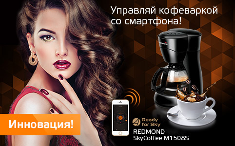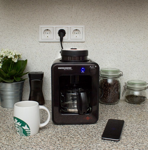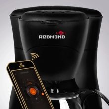 Die beliebteste und verkaufte Kaffeemaschine, laut Vermarkter, ist geworden Redmond Himmelcoffee. Eine hochmoderne Filterkaffeemaschine mit einer Kaffeemühlenfunktion lässt Sie entscheiden, welche Bohnen zu brauen sind: gemahlen oder ganz, stellen Sie die Mahldauer ein, wählen Sie die Zeit zum Aufwärmen des Getränks und senden Sie eine Benachrichtigung über die Bereitschaft des Kaffees. Ein großer Vorteil des Geräts ist, dass es über ein Smartphone ferngesteuert wird.