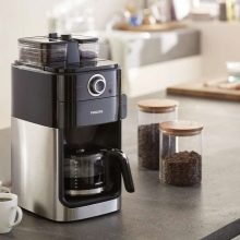 Eine Budget-Option für Kaffeeliebhaber ist Philips HD7762. Die kompakte Kaffeemaschine ist mit zwei Fächern für Getreide ausgestattet, mit denen Sie verschiedene Arten von Kaffee beim Kochen mischen können. Sie selbst wählen den Grad des Mahlens: fein - für Liebhaber von starkem Kaffee, und grobes Mahlen - um einen leichten und zarten Geschmack zu schaffen. Darüber hinaus kann die Kaffeemühle ausgeschaltet werden und normalen gemahlenen Kaffee verwenden, was sehr praktisch ist, wenn Sie es eilig haben. Dank des Drop-Stop-Systems können Sie jederzeit aufhören, Kaffee zuzubereiten und sofort mit dem Trinken beginnen. Sie können eine Philips Kaffeemaschine zu einem Preis von 14.990 Rubel kaufen.